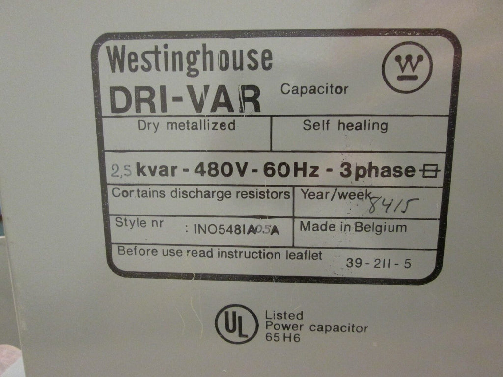 Westinghouse Dri-Var Capacitor 1N05481A05A 2.5kvar 480V 60Hz 3Ph Used