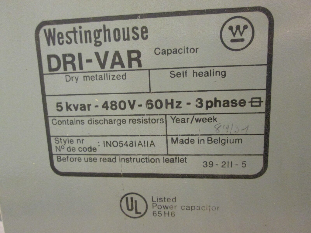 Westinghouse Dri-Var Capacitor 1N05481A11A 5kvar 480V 60Hz 3Ph Used