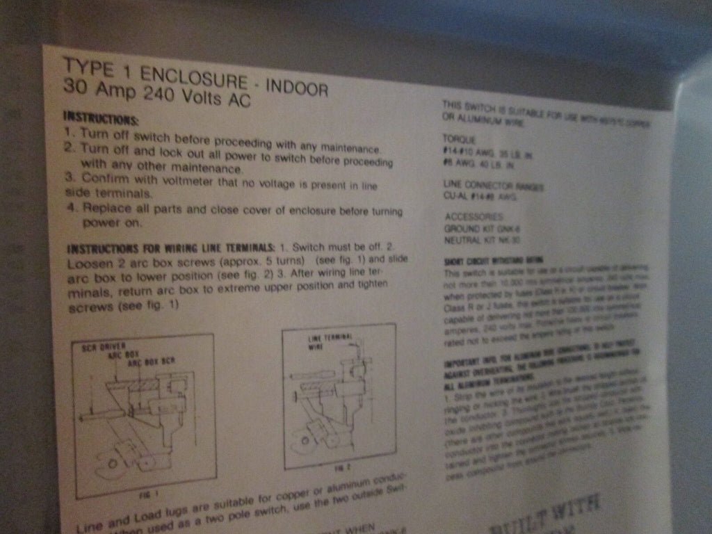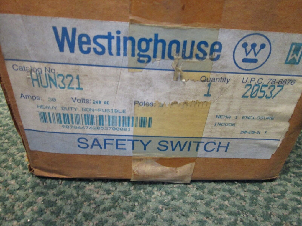 Westinghouse Non-fusible Safety Switch HUN321 30A 240V 3P New Surplus Condition: New – Open boxMPN: HUN321Brand: WestinghouseModel: Non-fusible Safety Switch Westinghouse Non-fusible Safety Switch HUN321 30A 240V 3P New Surplus Condition: New – Open boxMPN: HUN321Brand: WestinghouseModel: Non-fusible Safety Switch Westinghouse Non-fusible Safety Switch Part # HUN321 30A 240V 3P New Surplus LOC: 13B4-1 / AB4I1