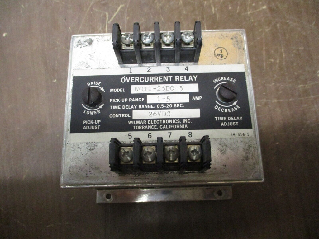 Wilmar Overcurrent Relay WCT1-26DC-5 Pick-Up: 1-5A Delay: 0.5-20 Sec Used