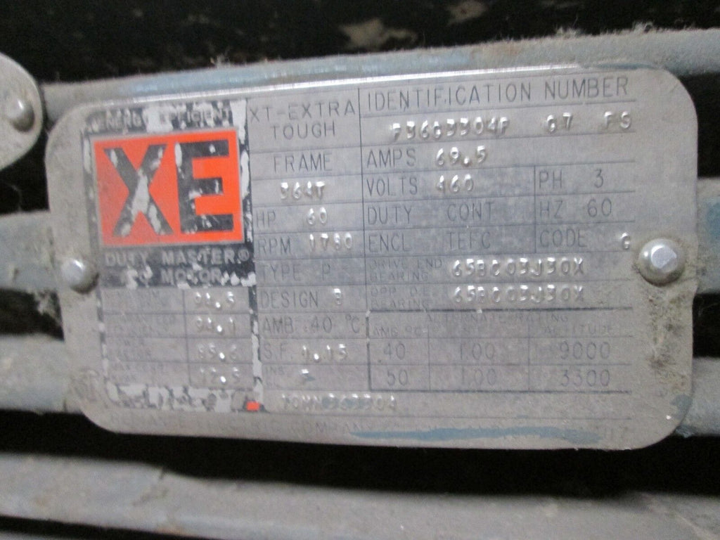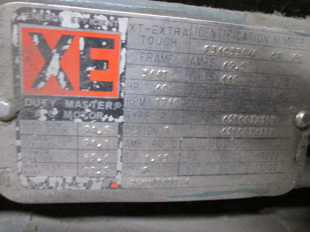 XE Energy Efficient Duty Master AC Motor F36G3304F G7 60HP 1780RPM 69.5A Used