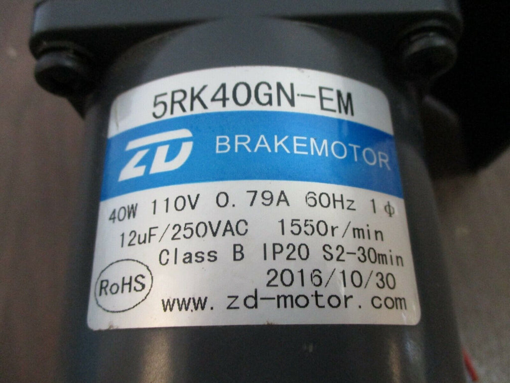 ZD Brakemotor w/ Gear Head 5RK40GN-EM / 5GN 120K 40W 110V 0.79A 60Hz 1Ph 250VAC