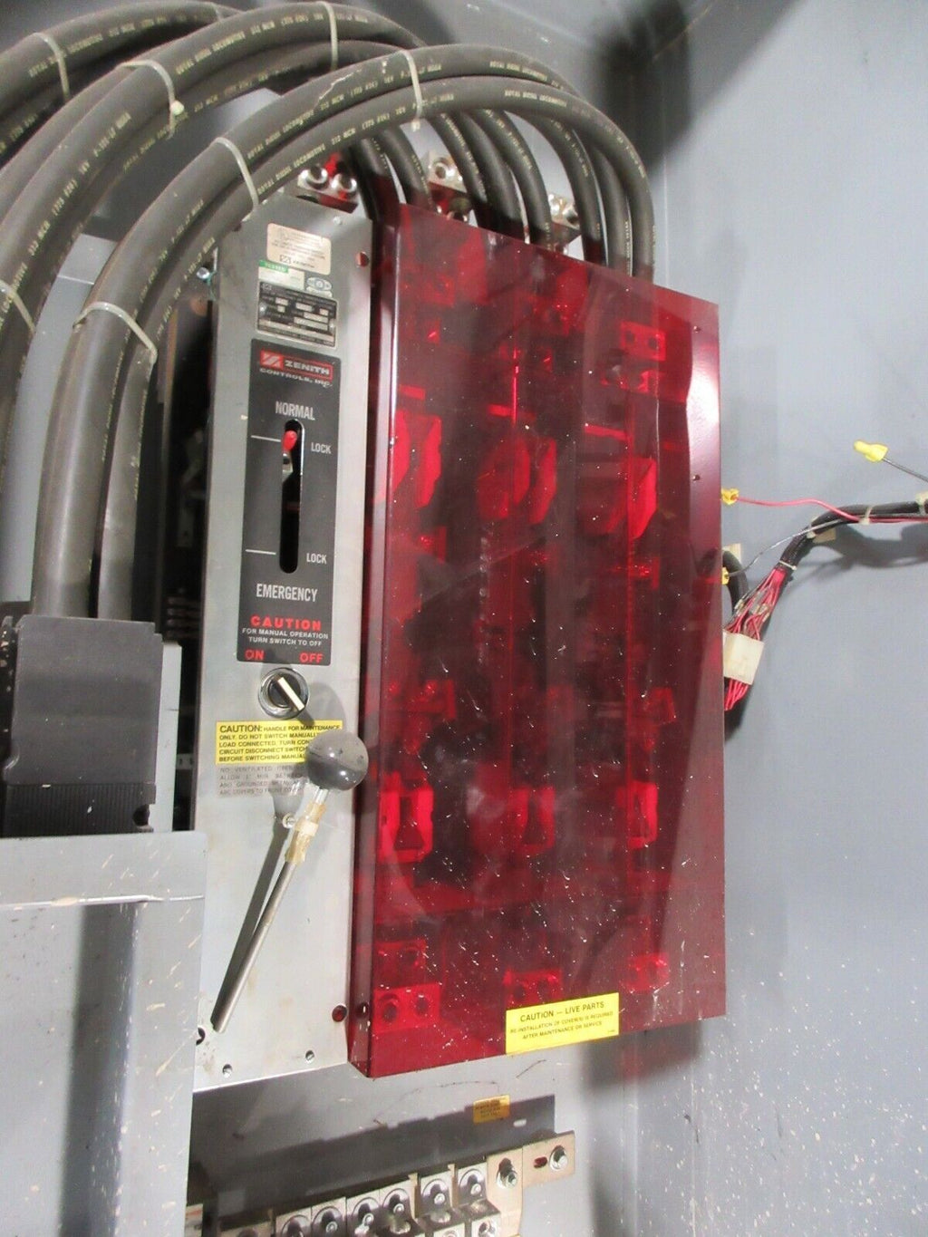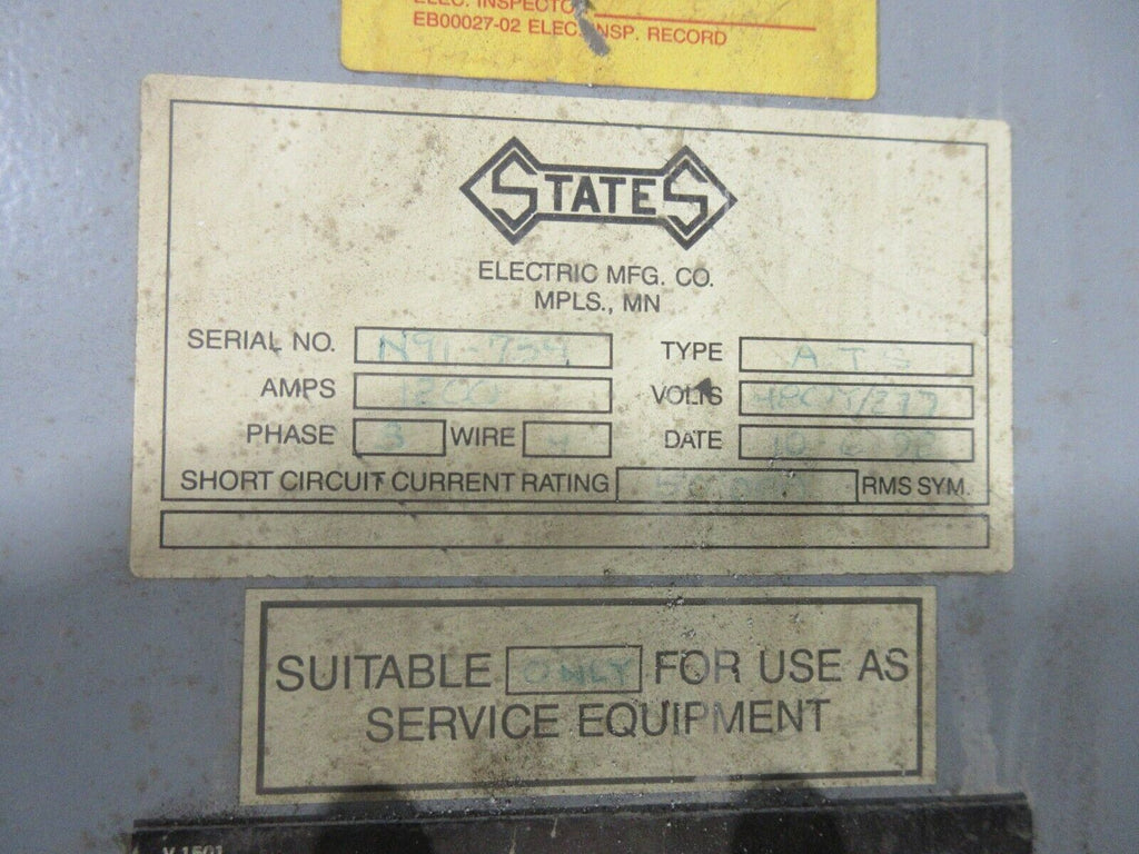 Zenith Automatic Transfer Switch ZTSH120EX-7AAELLPRTUW 1200A 480V 60Hz 3PH Used_x000D_ Condition: UsedBrand: ZenithType: AutomaticRated Amperage: 1200 AMPN: ZTSH120EX-7AAELLPRTUW Zenith Automatic Transfer Switch ZTSH120EX-7AAELLPRTUW 1200A 480V 60Hz 3PH Used Condition: UsedBrand: ZenithType: AutomaticRated Amperage: 1200 AMPN: ZTSH120EX-7AAELLPRTUW Zenith Automatic Transfer Switch Part #: ZTSH120EX-7AAELLPRTUW 1200A 480V 60Hz 3PH Breaker Disconnect Service Rated *No Cover Screws* *Dented Base* Used Weight: 725 lbs.LOC AB9M1-1